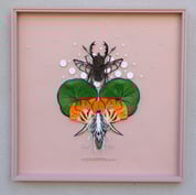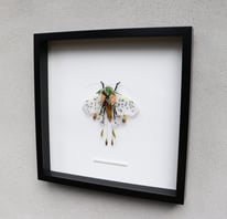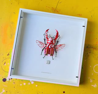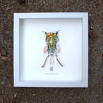 Utrash stadsgezicht, Neudeflat, materiaal Utrechts straatafval, zwarte diepte lijst met art glass 21cm x 28cm