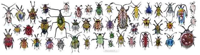 Materiaal : Tyvec papier in zwart, blauw, oranje en goud